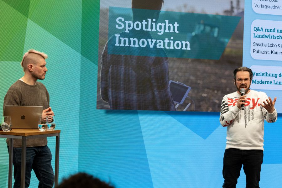 Bis 2050 müssen 60 % mehr Nahrungsmittel her – und das, obwohl wir bereits heute die planetaren Ressourcen ausschöpfen. „Ohne KI wird das nicht funktionieren“, findet Digitalisierungsexperte Sascha Lobo. In seinem Impulsvortrag stimmte er die Besucher der Grünen Woche auf Fortschritt und Veränderung ein. Das vom Forum Moderne Landwirtschaft organisierte Event fand anlässlich der Verleihung des Innovationspreises Moderne Landwirtschaft statt.