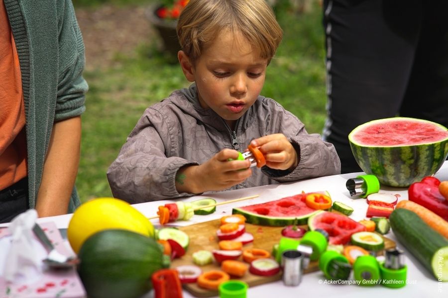 Zusätzlich konnten die Bewohner:innen in den vergangenen drei Ackerjahren in zahl- und wissensreichen Workshops einen einzigartigen Einblick in das Ökosystem Acker bekommen. So zeigte Ackercoach Virginia etwa, wie aus torffreier Gartenerde, etwas Tonerde-Pulver und zarten Pflanzensamen ganz einfach kleine Saatgutbomben selbst hergestellt werden können. Gruseliger Gartenspaß war beim gemeinsamen Kürbisschnitzen zu Halloween garantiert und beim großen Sommerfest 2023 wurden unter der geduldigen Anleitung von Ernährungsexpertin Nina kunterbunte Gemüselollies gezaubert.